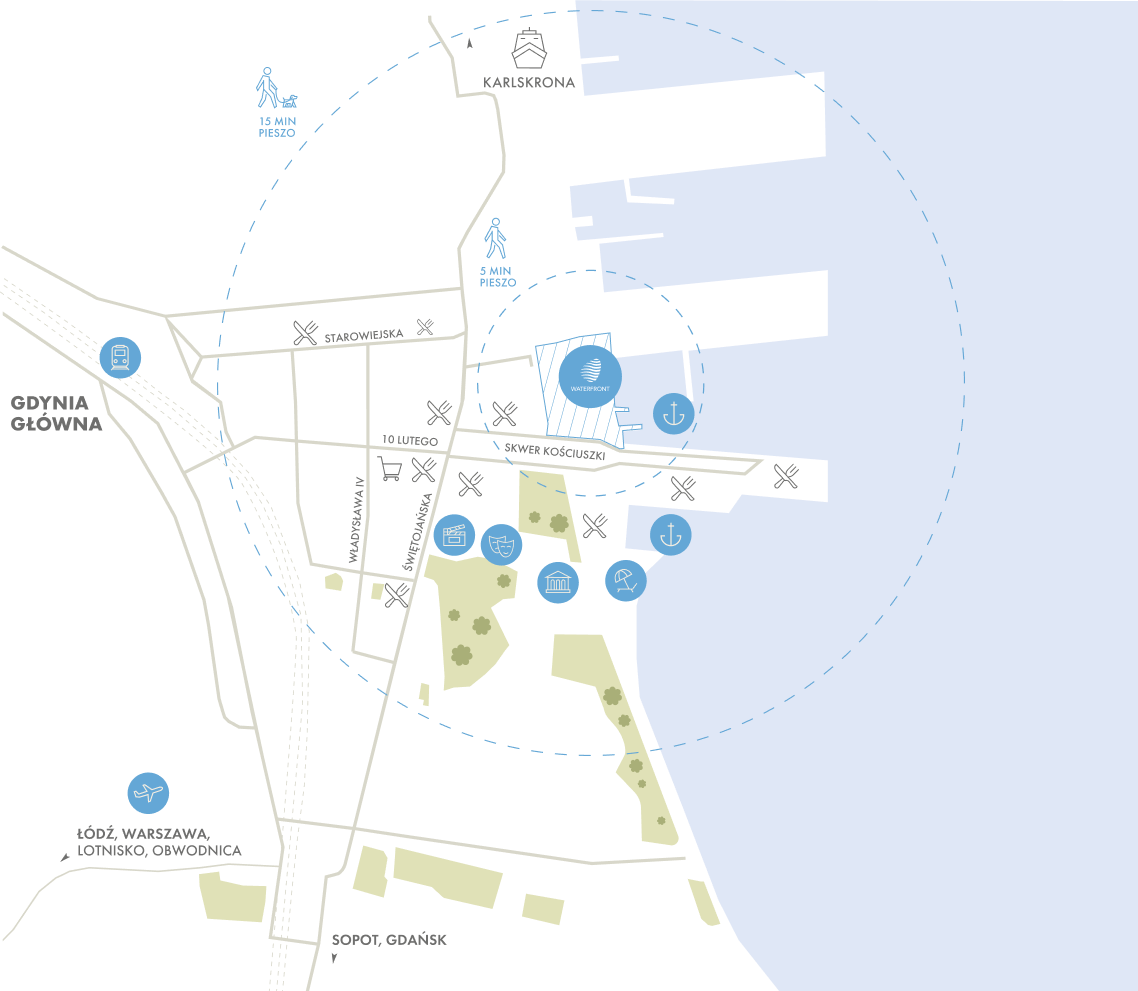 Teren między skwerem Kościuszki, ulicami Jerzego Waszyngtona i Antoniego Hryniewickiego przez wiele lat pozostawał nieco zapomniany, nie wykorzystywano jego potencjału. Zagospodarowanie tego istotnego fragmentu miasta sprawi, że Waterfront stanie się nowym sercem Gdyni.