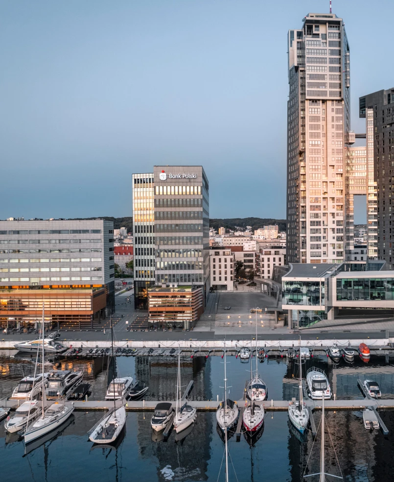 Inwestycja powstaje w ścisłym centrum Gdyni, na styku Śródmieścia i nabrzeża, w miejscu historycznej linii brzegowej. O dawnym, przedwojennym porcie wciąż przypomina zabytkowy Krzyż Rybacki im. Tadeusza Wendy.